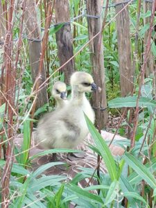 Bonne nouvelle : deux oisons viennent d’arriver ! Ils se promènent tranquillement… parfois un peu n’importe où. Mais attention : ils n’ont pas encore le permis de traverser ! Alors, lors de vos promenades, pensez à garder un œil sur ces deux mini‑boules de plumes ….et évitez les embouteillages de plumes !
